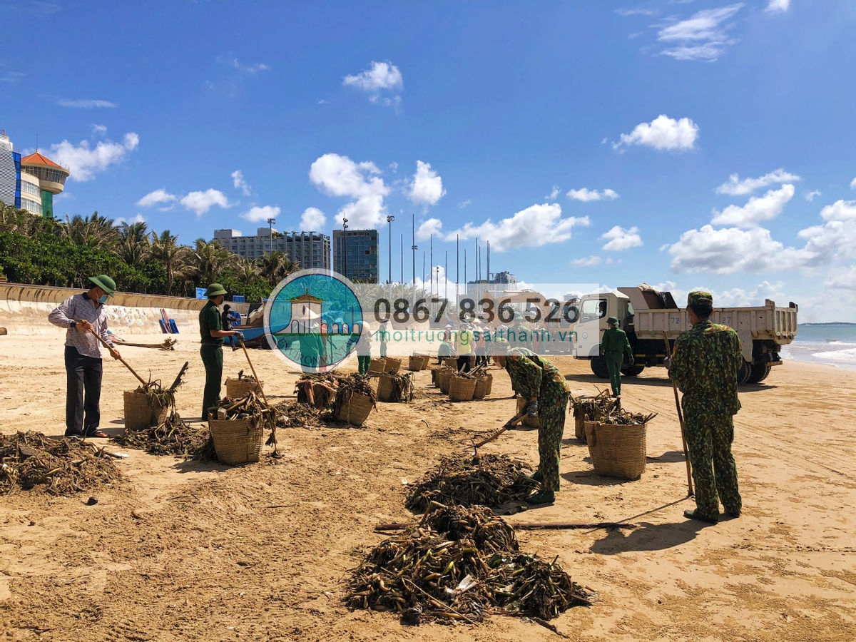Để nhanh chóng thu gom lượng rác trên, cơ quan chức năng TP Vũng Tàu đã huy động thêm lực lượng biên phòng, công an, đoàn viên thanh niên, hợp tác xã du lịch, người dân và công ty CP dịch vụ môi trường và Công trình đô thị Vũng Tàu đã huy động hàng trăm công nhân tổ chức thu gom, nhiều xe cẩu và xe tải cũng được huy động cùng tham gia đã nhanh chóng xuống bãi biển để thu gom, dọn rác.