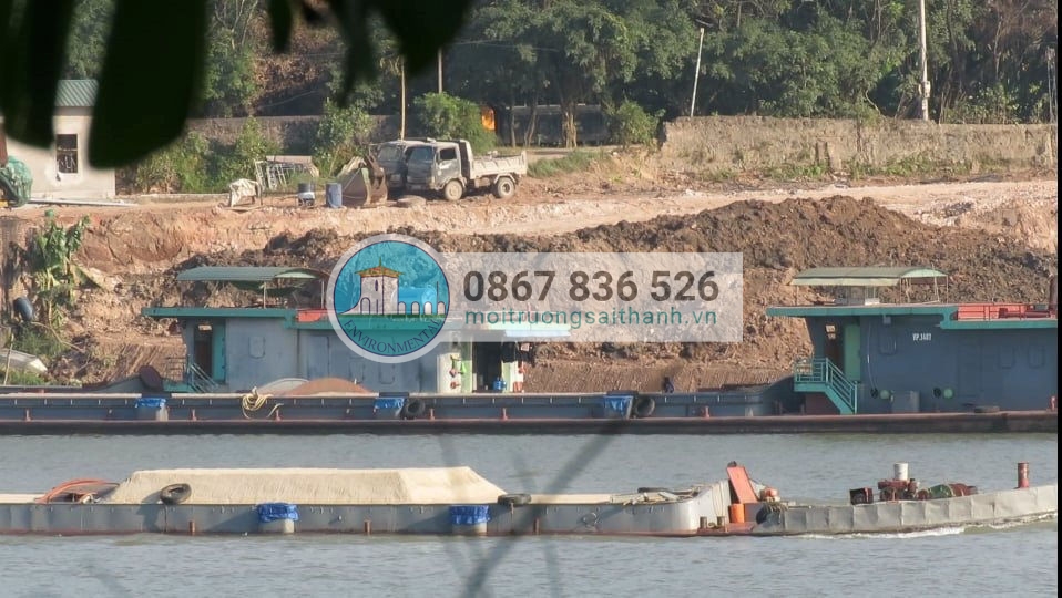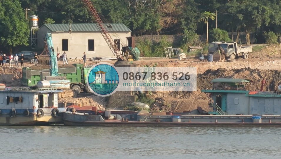 Hoạt động đổ chất thải xây dựng xuống lòng sông Hồng gây ô nhiễm môi trường, cản trở dòng chảy, vi phạm Luật Đê điều nghiêm trọng với mục đích xây dựng mố cẩu để kinh doanh vận chuyển đất, cát…